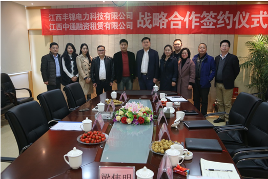 2017年3月9日下午3点,江西丰锦电力科技有限公司与江西中通融资租赁有限公司签署战略合作协议,签约仪式在南昌青湖大厦3楼江西丰锦电力科技有限公司会议室隆重举行。此次签约标志着双方建立了稳固的战略合作关系。